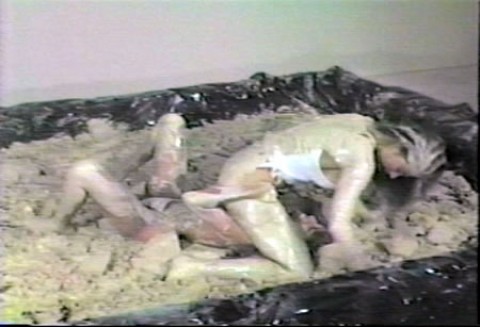 This mud match is a magnificent event with two seasoned mud wrestlers fighting to a no holds barred conclusion. Leslie and newcomer Nancy fight to a vicious finish and production helper Barbi is brought accidentally into the fray. We didn't plan it this way, but neither did Barbi. You have never seen a mud match like this, for the tops go flying and the loser is finished off with her own clothing.
